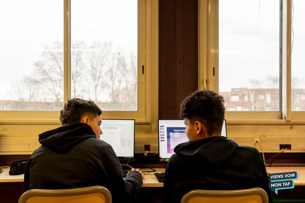 L'équipe de ViensVoirMonTaf rend visite à Geisy et à sa tutrice durant son stage. Crédit photo Renaud Marion