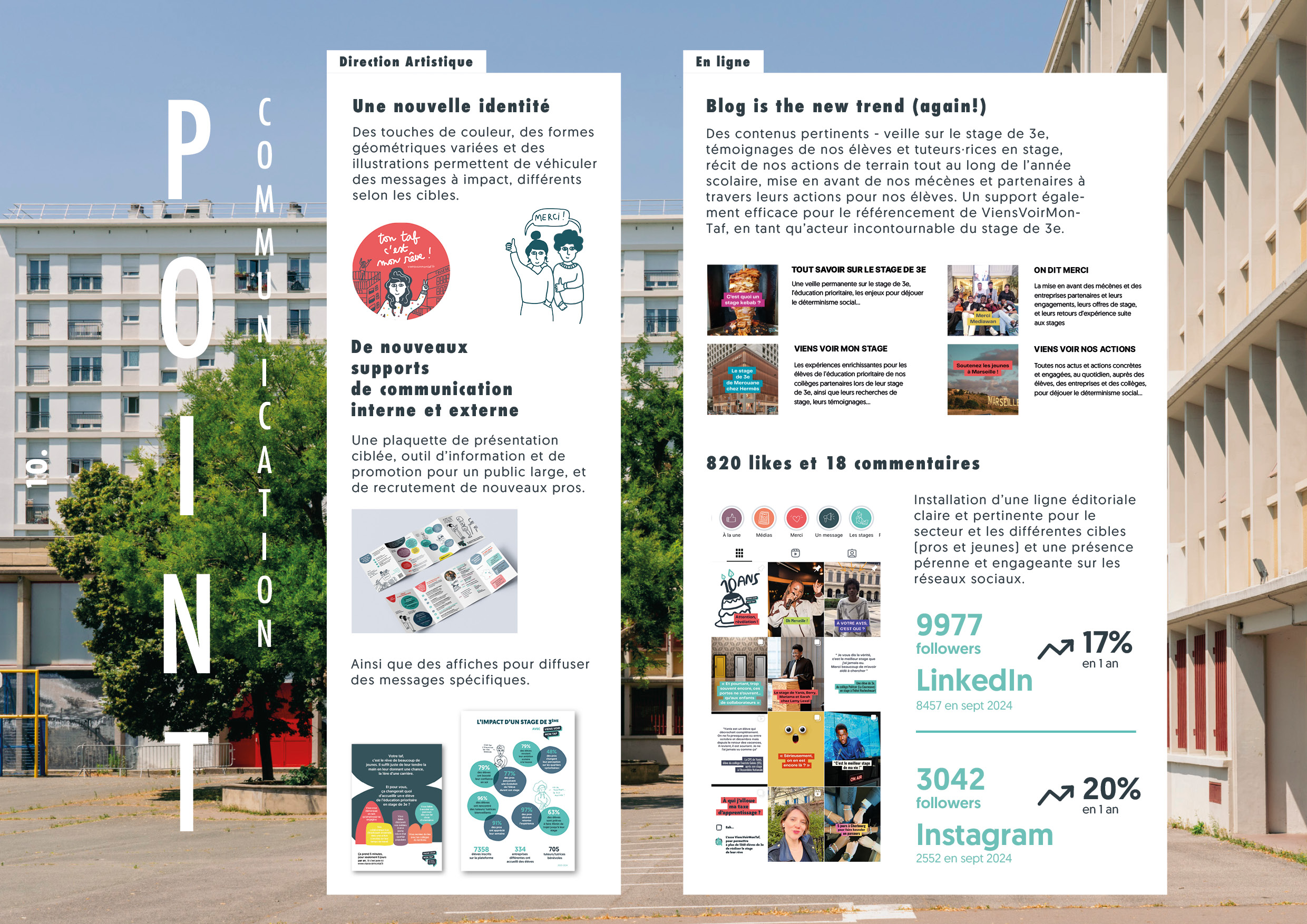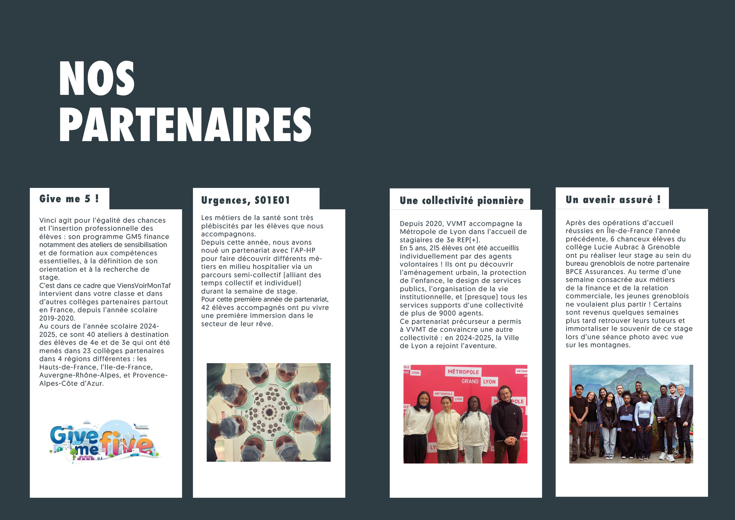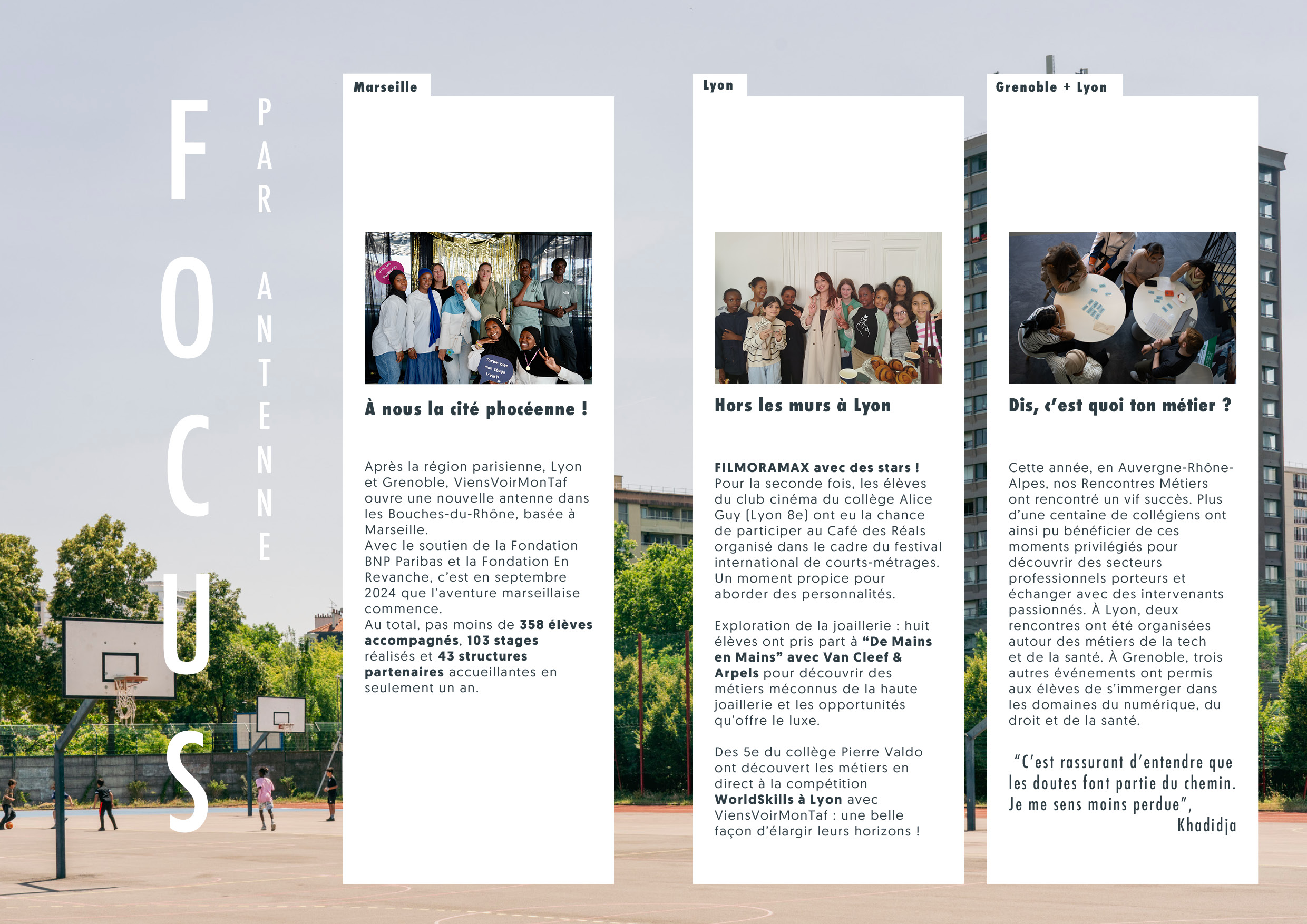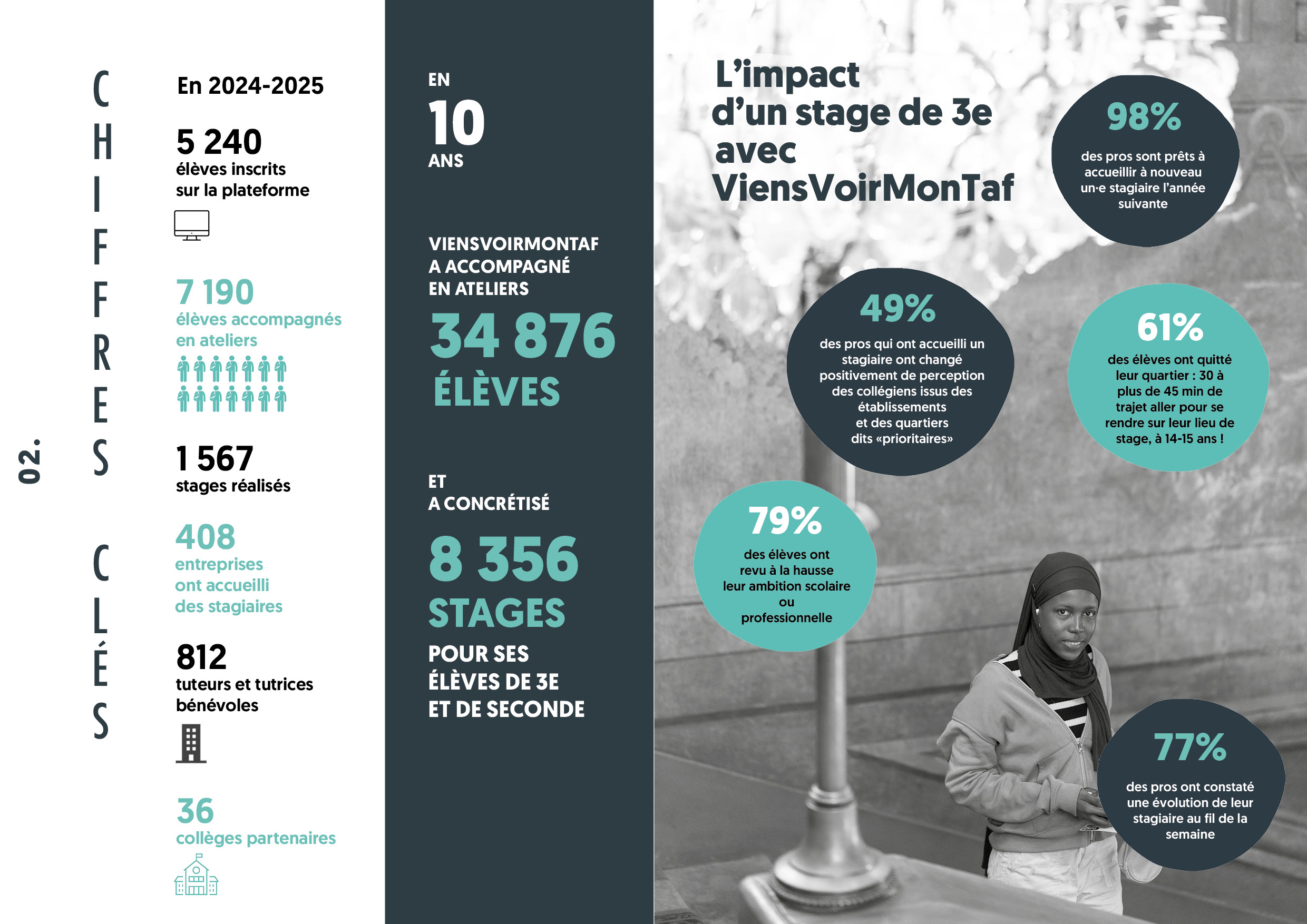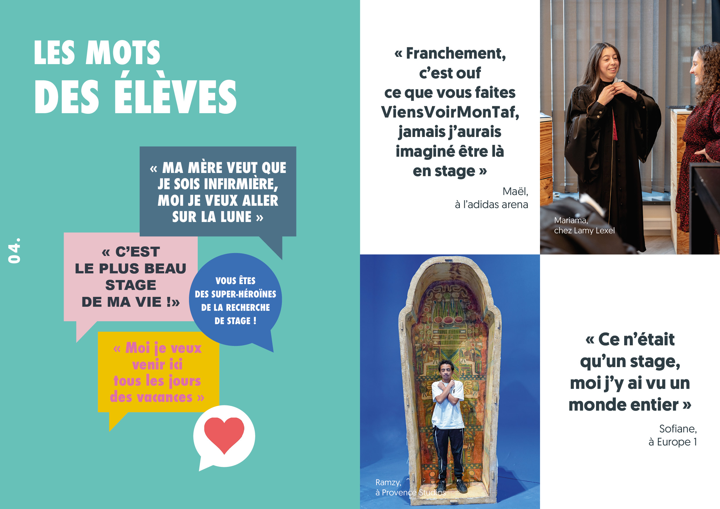 ViensVoirMonTaf, c’est quoi ? Quelles ont été nos actions durant l’année passée ? Les témoignages des élèves et des pros durant la semaine stage de 3e ? Quel est notre ancrage territorial ? ViensVoirMonTaf en chiffres…
